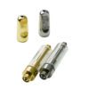 The Glass Empty Cartridge empty cartridge comes in 0.5ml and 1.0ml sizes with four large 2.0mm intake holes to accommodate most concentrate and viscous oils. The ceramic heating coil delivers smooth vapor while the integrated stainless steel heating wire helps maintain a consistent temperature. At 3.7v, the heating element temperature is around 180° Celsius. For high terpene oils, we recommend using a lower voltage battery.